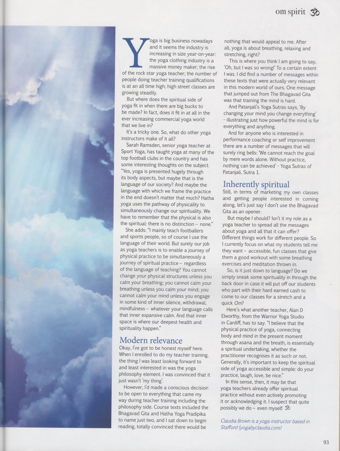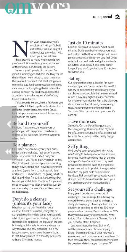 Claudia writes for OM Yoga magazine! OM Yoga December 2015: