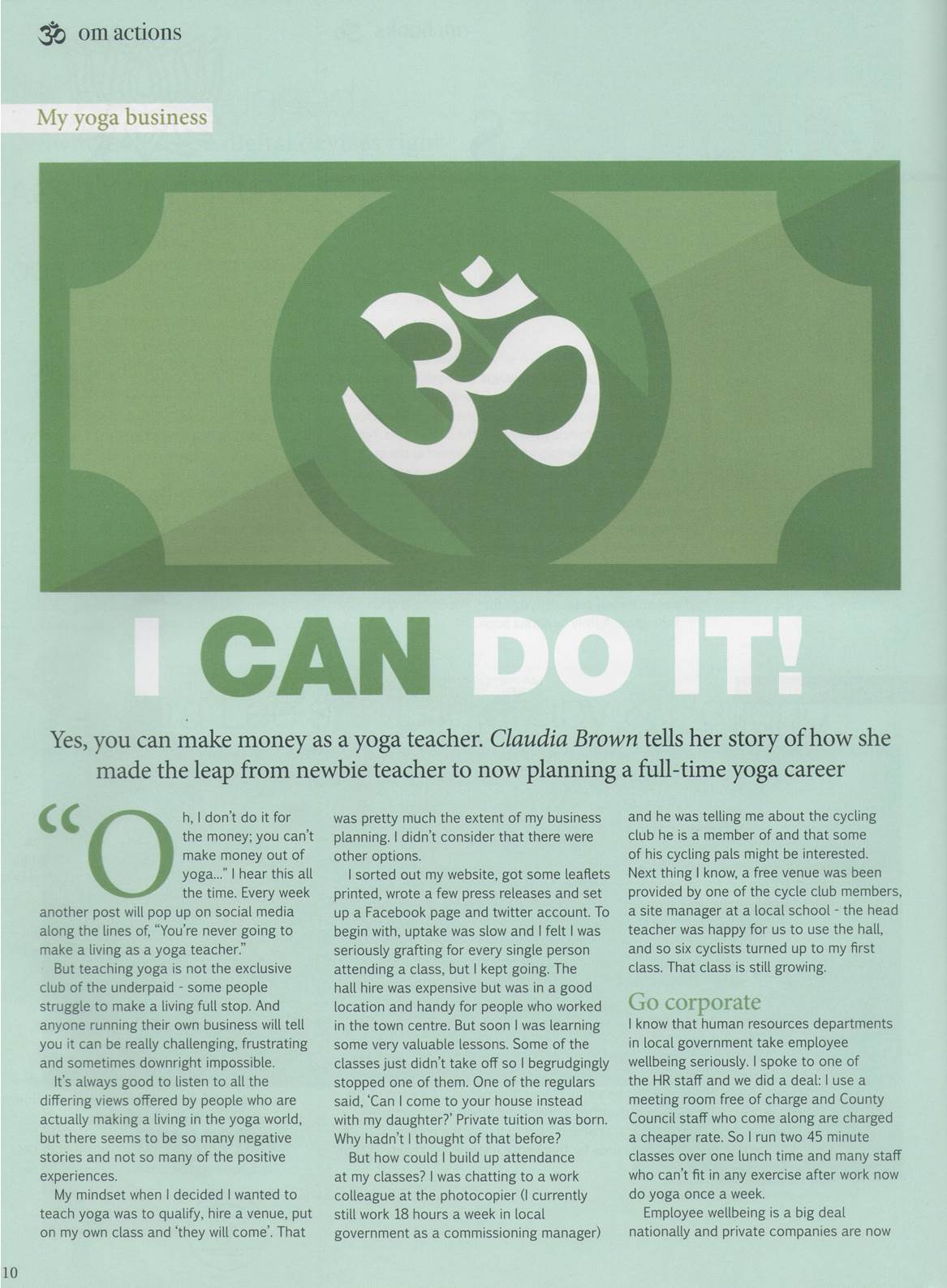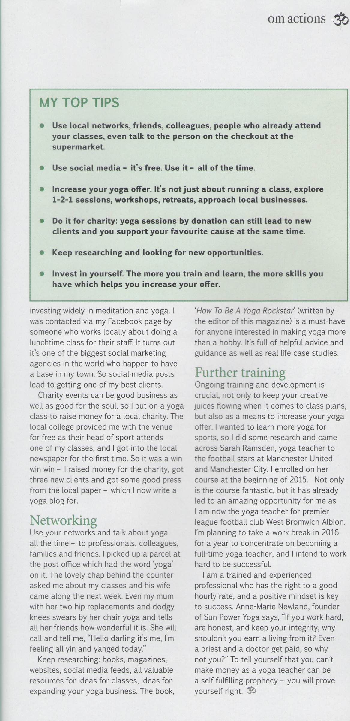 I write a monthly column for Om Yoga magazine - by teachers for teachers, called, 'My Yoga Biz'.